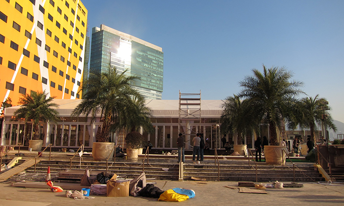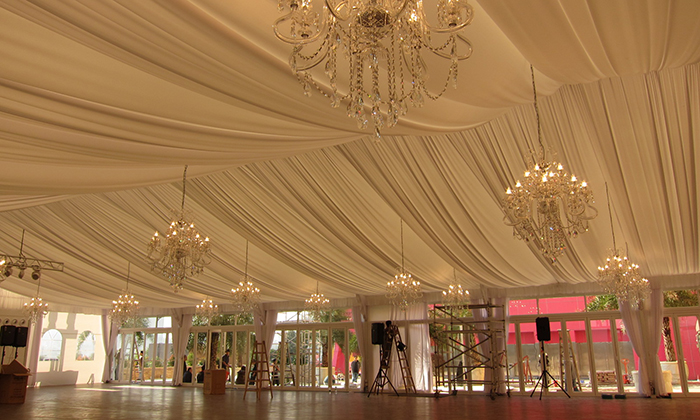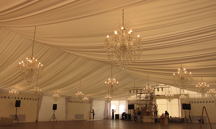 我司嚴(yán)格執(zhí)行ISO9001的質(zhì)量管理體系,確保不良產(chǎn)品的最小化及客戶滿意度的最大化。我們的的主要產(chǎn)品包括可移動(dòng)的模塊化鋁合金支架篷房,有不同風(fēng)格的篷房及裝飾可供選擇,篷房跨度從3米到60米。此外,還包括錐頂篷房和吊頂篷房,以及篷房配件,如照明燈具、地板、空調(diào)、桌椅及其它用于篷房內(nèi)部的家具。篷房可廣泛應(yīng)用于大小型活動(dòng)、婚慶、展會(huì)、體育、酒店、航空和工業(yè)等其它領(lǐng)域。篷房框架結(jié)構(gòu)為高強(qiáng)度鋁合金6061/T6型材,篷布為防水、阻燃的雙面PVC涂層聚酯纖維布,主體結(jié)構(gòu)風(fēng)載荷不少于100Km/h。
