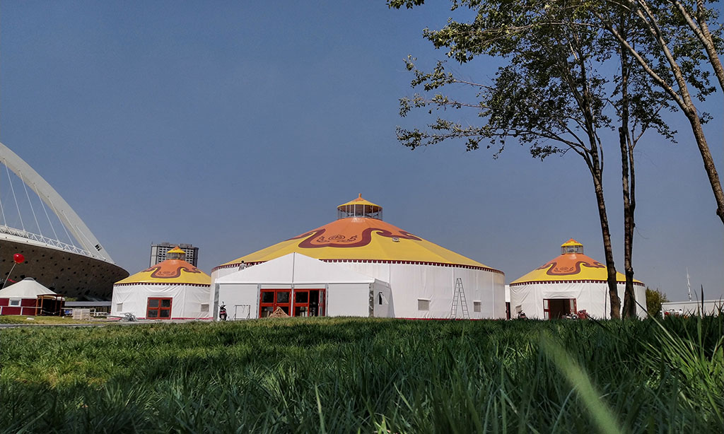 蒙古包篷房的定制尺寸一般在5-30米之間,支架一般采用高強度航空鋁合金,篷布采用750-900克每平方米的pvc刀刮涂層合成纖維布,顏色可根據(jù)客戶需要定制。配置方面:洗手間隔斷、保溫棉、衛(wèi)浴、家具、家電等等。該篷房可用于特色野奢帳篷住宿、休閑旅游特色餐廳、園林景觀休息室、特色產(chǎn)品展廳等等。