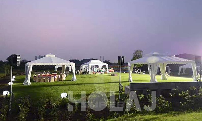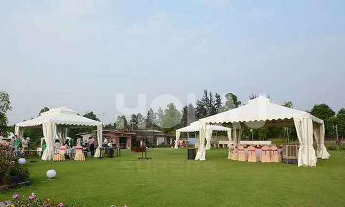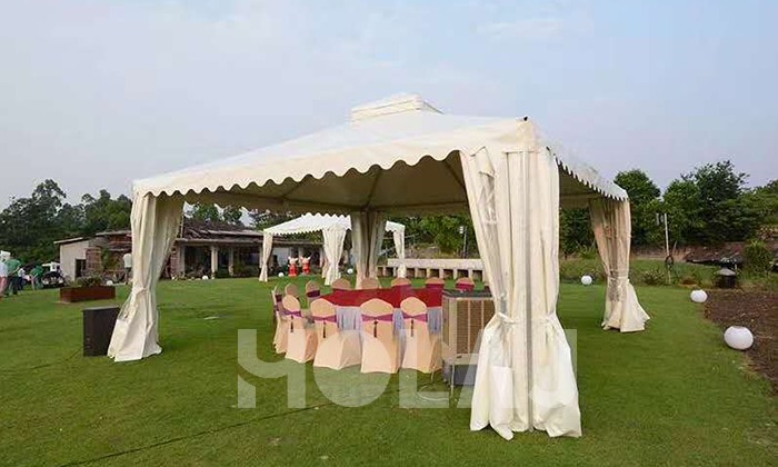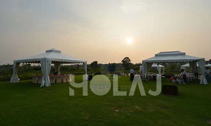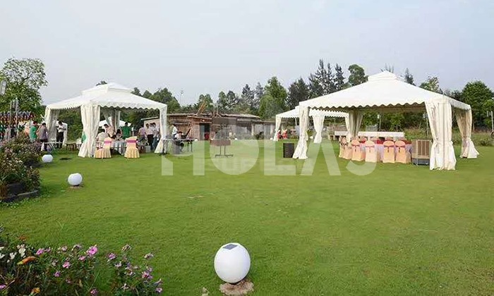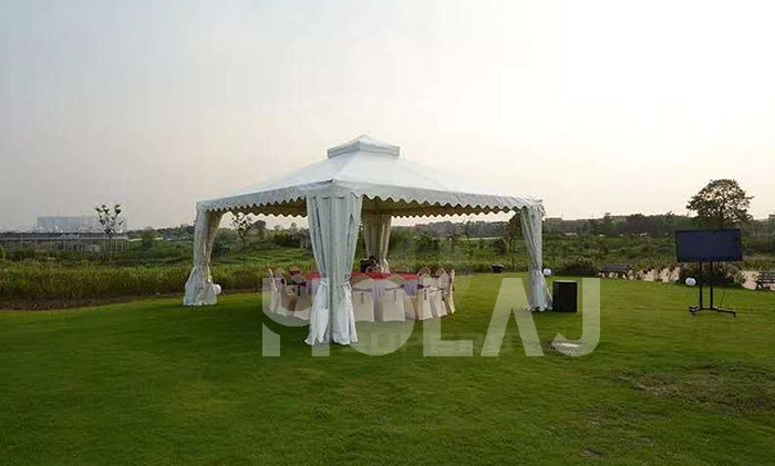 我司嚴格執(zhí)行ISO9001的質(zhì)量管理體系,確保不良產(chǎn)品的最小化及客戶滿意度的最大化。我們的的主要產(chǎn)品包括可移動的模塊化鋁合金支架篷房,有不同風格的篷房及裝飾可供選擇,篷房跨度從3米到60米。此外,還包括錐頂篷房和吊頂篷房,以及篷房配件,如照明燈具、地板、空調(diào)、桌椅及其它用于篷房內(nèi)部的家具。篷房可廣泛應用于大小型活動、婚慶、展會、體育、酒店、航空和工業(yè)等其它領域。篷房框架結(jié)構(gòu)為高強度鋁合金6061/T6型材,篷布為防水、阻燃的雙面PVC涂層聚酯纖維布,主體結(jié)構(gòu)風載荷不少于100Km/h。