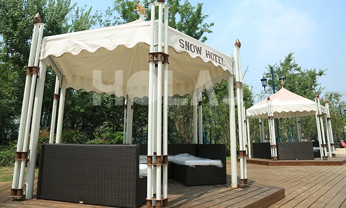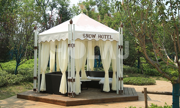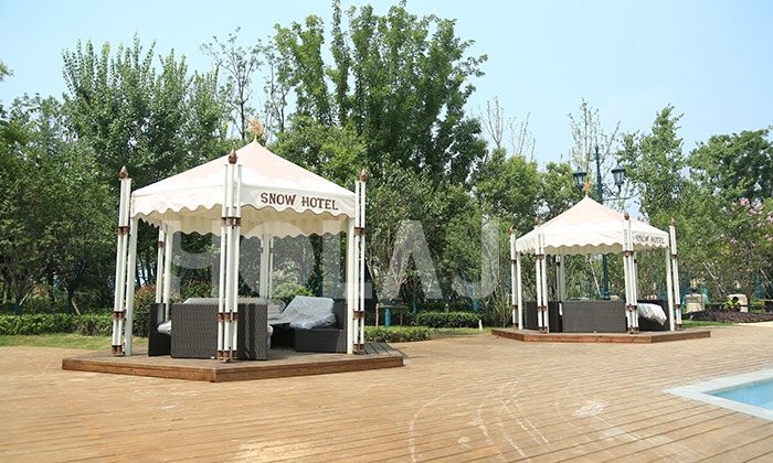 我司嚴(yán)格執(zhí)行ISO9001的質(zhì)量管理體系,確保不良產(chǎn)品的最小化及客戶滿意度的最大化。我們的的主要產(chǎn)品包括可移動的模塊化鋁合金支架篷房,有不同風(fēng)格的篷房及裝飾可供選擇,篷房跨度從3米到60米。此外,還包括錐頂篷房和吊頂篷房,以及篷房配件,如照明燈具、地板、空調(diào)、桌椅及其它用于篷房內(nèi)部的家具。篷房可廣泛應(yīng)用于大小型活動、婚慶、展會、體育、酒店、航空和工業(yè)等其它領(lǐng)域。篷房框架結(jié)構(gòu)為高強(qiáng)度鋁合金6061/T6型材,篷布為防水、阻燃的雙面PVC涂層聚酯纖維布,主體結(jié)構(gòu)風(fēng)載荷不少于100Km/h。
