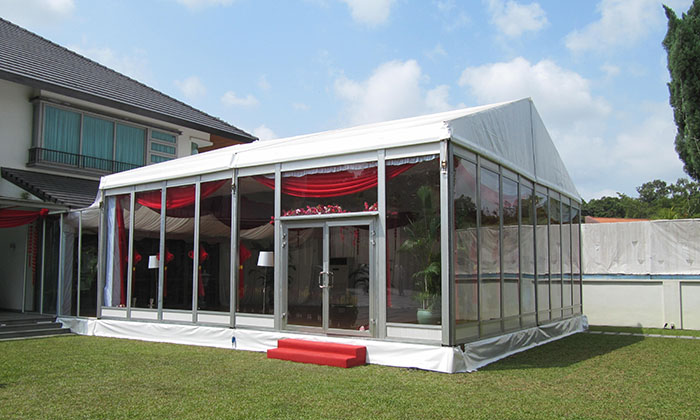 我司嚴(yán)格執(zhí)行ISO9001的質(zhì)量管理體系,確保不良產(chǎn)品的最小化及客戶滿意度的最大化。我們的的主要產(chǎn)品包括可移動(dòng)的模塊化鋁合金支架篷房,有不同風(fēng)格的篷房及裝飾可供選擇,篷房跨度從3米到60米。此外,還包括錐頂篷房和吊頂篷房,以及篷房配件,如照明燈具、地板、空調(diào)、桌椅及其它用于篷房?jī)?nèi)部的家具。篷房可廣泛應(yīng)用于大小型活動(dòng)、婚慶、展會(huì)、體育、酒店、航空和工業(yè)等其它領(lǐng)域。篷房框架結(jié)構(gòu)為高強(qiáng)度鋁合金6061/T6型材,篷布為防水、阻燃的雙面PVC涂層聚酯纖維布,主體結(jié)構(gòu)風(fēng)載荷不少于100Km/h。