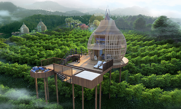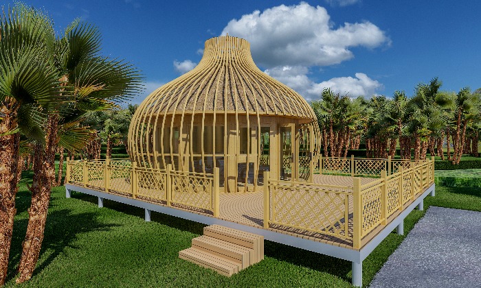 設(shè)計理念源于“鳥籠”結(jié)構(gòu)整齊大氣的布局令人歸隱山林,敞開心扉,歸隱山林,具有開放式的玲瓏造型,賦予了它獨(dú)特的真實感和具有震撼力的形體,外觀即為建筑的結(jié)構(gòu),立面與結(jié)構(gòu)達(dá)到了高度的統(tǒng)一。室內(nèi)設(shè)有臥室和洗漱間,