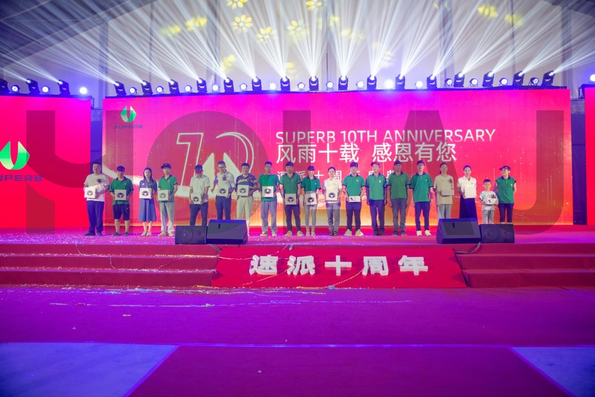 為進(jìn)一步激發(fā)全體員工的創(chuàng)業(yè)熱情,引導(dǎo)全體員工愛(ài)崗敬業(yè),慶典中,速派評(píng)選出了一批過(guò)去十年來(lái)表現(xiàn)出色的優(yōu)秀員工和優(yōu)秀團(tuán)隊(duì),并頒發(fā)了榮譽(yù)證書(shū)和獎(jiǎng)品,以表彰他們的杰出成就和貢獻(xiàn)。