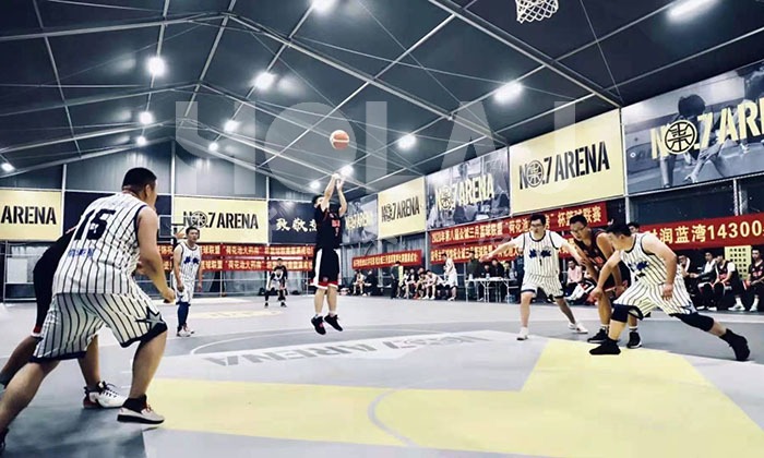 好來(lái)居篷房為籃球館提供定制解決方案,可以根據(jù)籃球場(chǎng)尺寸進(jìn)行定制,長(zhǎng)度按每5米遞增不設(shè)限制。你可以根據(jù)自己的想法進(jìn)行建造,內(nèi)部可以容納一個(gè)或多個(gè)標(biāo)準(zhǔn)尺寸的籃球場(chǎng)。