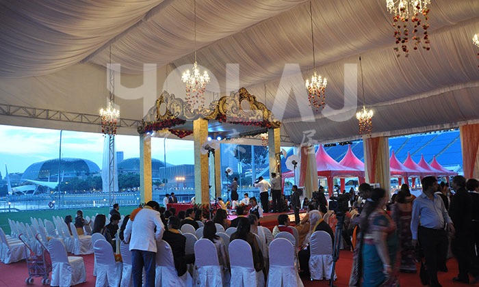 我司嚴(yán)格執(zhí)行ISO9001的質(zhì)量管理體系,確保不良產(chǎn)品的最小化及客戶滿意度的最大化。我們的的主要產(chǎn)品包括可移動(dòng)的模塊化鋁合金支架篷房,有不同風(fēng)格的篷房及裝飾可供選擇,篷房跨度從3米到60米。此外,還包括錐頂篷房和吊頂篷房,以及篷房配件,如照明燈具、地板、空調(diào)、桌椅及其它用于篷房?jī)?nèi)部的家具。篷房可廣泛應(yīng)用于大小型活動(dòng)、婚慶、展會(huì)、體育、酒店、航空和工業(yè)等其它領(lǐng)域。篷房框架結(jié)構(gòu)為高強(qiáng)度鋁合金6061/T6型材,篷布為防水、阻燃的雙面PVC涂層聚酯纖維布,主體結(jié)構(gòu)風(fēng)載荷不少于100Km/h。