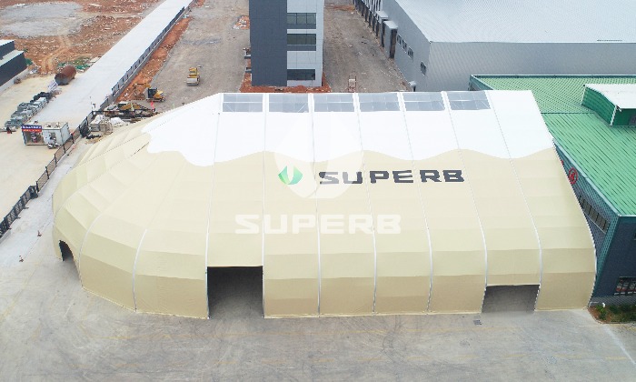 3,環(huán)保與可持續(xù)性:裝配式篷房在安裝過程中幾乎不產(chǎn)生建筑垃圾,且大部分材料可回收利用,符合現(xiàn)代環(huán)保理念。此外,其設(shè)計注重場地的最小破壞和資源的最優(yōu)利用,有利于保護(hù)生態(tài)環(huán)境。