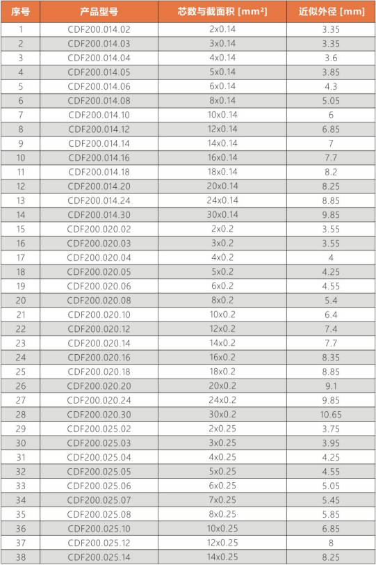 彎曲半徑                :     非拖鏈內(nèi)運動:5.0X電纜外徑